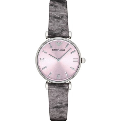 【ARMANI】Retro 羅馬風情晶鑽時尚腕錶-粉紫x灰(AR1882)
