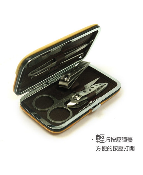 內容物:老皮剪x1、剪刀x1、指甲剪x1、小銼刀x1、夾子x1、耳挖棒x1