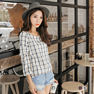 1230新品雙色格紋造型肩釦設計上衣.2色 更多詳細的資訊這邊請: