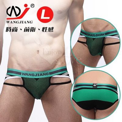 線上週年慶-草莓牛奶WJ純棉彩條紋個性鏤空U凸三角褲﹝孔雀綠 L﹞ 好用