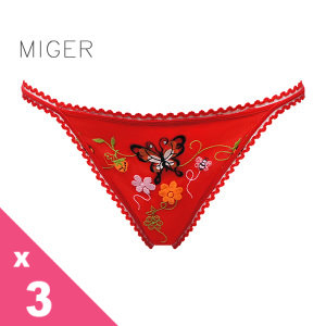 線上週年慶-[MIGER密格內衣]蝶戀性感網紗中低腰三角內褲-紅色+咖啡+黃色 試用文