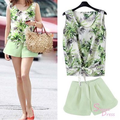 今夏流行款!預購【Sweet Dress】椰林風情綁帶無袖雪紡套裝 熱銷