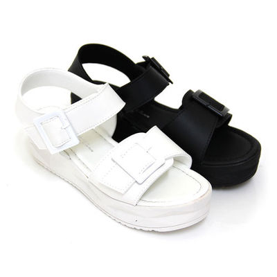 【Pretty】百搭款雙釦魔鬼氈繫踝厚底涼鞋-黑色、白色