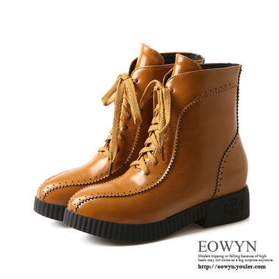 EOWYN.秋冬時尚款綁帶亮色內增高短靴EMA635-69/4色/黃色36/現貨