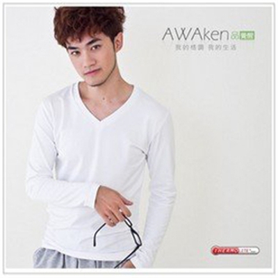 線上週年慶-進口杜邦專利中空紗 發熱衣 保暖衣 寒流來襲必備!男款V領 白色 試用文