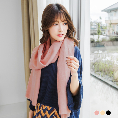 活動 1119新品 【特價款】 珍珠綴柔感素色圍巾.3色