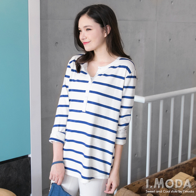 開箱 0505新品 微風自然~條紋開襟弧形下襬長版上衣.2色