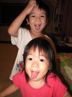 "媽媽!我的舌頭比較長~"、"我的比較長!"...