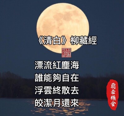 文/蘭若精舍.柳藏經 漂流紅塵海, 誰能夠自在; 浮雲終散去, 皎潔月還來。 (柳藏經于蘭若精舍2021/9/21)