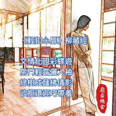 文/蘭若精舍.柳藏經 文情化現彩蝶遊, 房門輕露儷人袖, 綠樹成蔭拂倩影, 欲拒還迎巧帶羞。 (柳藏經于蘭若精舍2020/6/22)
