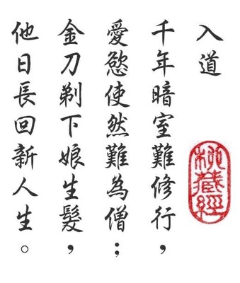 文/蘭若精舍.柳藏經 千年暗室難修行, 愛慾使然難為僧; 金刀剃下娘生髮, 他日長回新人生。 (柳藏經于蘭若精舍2012/6/28) (天下叢林飯似山,缽盂到處任君餐,黃金...