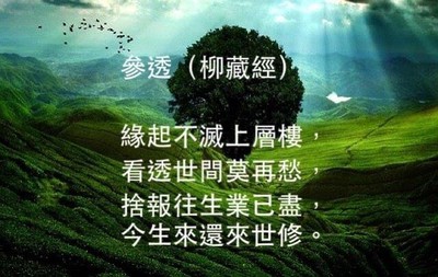 文/蘭若精舍.柳藏經 緣起不滅上層樓, 看透世間莫再愁, 捨報往生業已盡, 今生來還來世修。 (柳藏經于蘭若精舍2015/1/14)