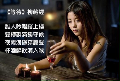 文/蘭若精舍.柳藏經 誰人吟唱踏上樓 雙樽斟滿獨守候 夜雨滂礡穿廊聲 杯酒醉飲滴入喉 (柳藏經于蘭若精舍2017/3/23)
