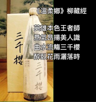 文/蘭若精舍.柳藏經 英雄本色王者師, 意氣昂揚美人識; 曲水流觴三千櫻, 醉臥花雨灑落時。 (柳藏經于蘭若精舍2016/1/29) #sake #清酒 #三千櫻 #三...