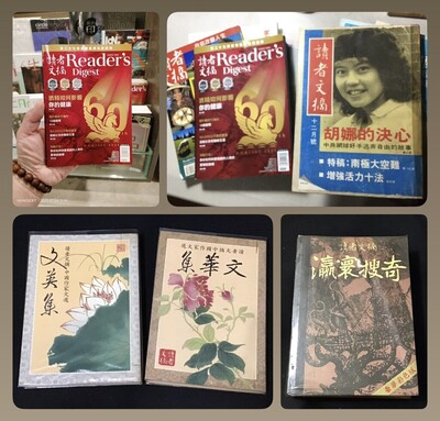 《讀者文摘》出版過很多不錯的書,例如《文華集》、《文英集》的文學書,還有探尋世界的《瀛寰搜奇》,都是我年輕時的收藏書,當時感覺是頂尖的作品,幾十年前在《讀者文摘》投稿笑話莞爾集,一則稿費就有1500元,如果文章能被刊出,就等於金榜題名,讓人感到驕傲。