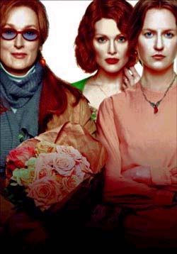 而茱莉安摩爾飾演一個生活單純乏味的美國家庭主婦蘿拉布朗,閒暇時喜歡閱讀吳爾芙的著作「戴洛維夫人」,卻因為一種對於不知為何的生活,在深深的絕望感中瀕臨崩潰,同樣與吳爾芙都有深愛他們的丈夫,卻為何會陷入生命裡的絕境?