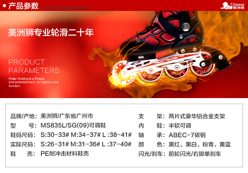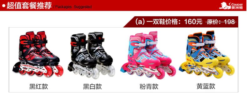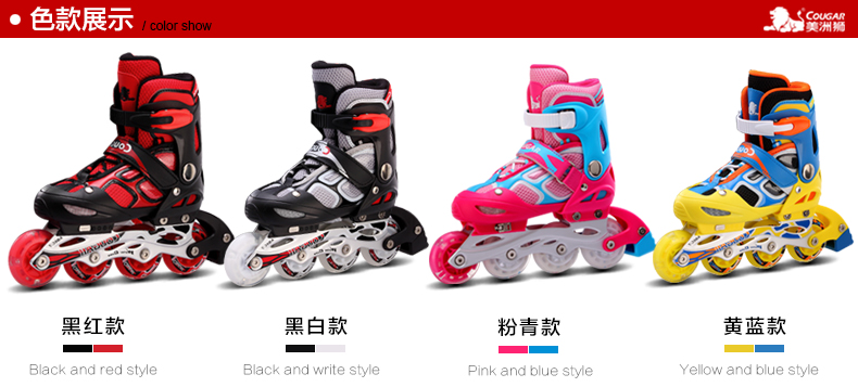 【特價】台灣直送美洲獅溜冰鞋兒童全套裝輪滑鞋可調閃光小孩旱冰鞋成年男女滑冰鞋 - 7077324001
