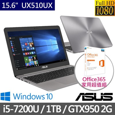 【ASUS】UX510UX 15.6吋FHD 獨顯筆電-金屬灰(i5-7200U-4G-1TB -GTX950M-2G-W10)+Office365 家用版電腦主機