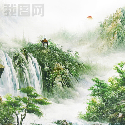 紅花綠葉山谷中,銀絲瀑布谷底沖;俗云山中無甲子,日月常在伴清風。