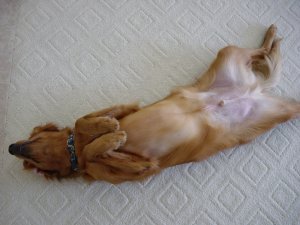 過了二個小時, (上次起來是12點左右, 這次差不多剛過2點) 我又聽到一陣哭聲. 起來看,小王子趴在門前, 一副難過的樣子. 我過去抱著他, 摸摸他的肚子. 突然聽見一聲"咕嚕"的聲音從他肚子傳出. 我心想不妙, 就又帶他下樓到後院去. 他又尿了一次. 可是這次他沒有往家裡跑回來,而是朝旁邊的鐵門跑去. 我想他大概是想出去外面上大號. (小王子不習慣在自己家的後院大號) 於是,我就先把他叫回家,再往車庫的門走去. 只見小王子很興奮的搖著尾巴跟過來. 我們從車庫出去,走了一段路後,他還回頭看看小公主有沒有跟出來. 我帶著他到了平時上廁所的地方,他立刻就蹲了下去. 可憐的小王子竟然拉肚子了...