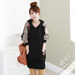 【糖罐子】豹紋拼接袖口袋連帽棉衫(共三色)