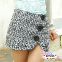 【日暮里洋服行】黑色毛線花圓弧毛呢短 經典的浪漫是女人們追求的目標, 在經典中注入新的元素, 成為新的look,成就了經典, 英國的復古格紋歷久彌新, 每季都可以看到他的身影, 永遠的百搭款, 俏麗的經典毛呢短褲加上絨毛布包釦, 讓妞兒們走復古風又帶有可愛感~