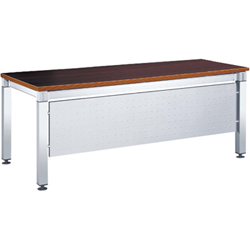 『台灣製造』產品嚴格品管。 歐美流行款式,美觀大方。桌板採用胡桃木紋美耐板檯面,千層派封邊,表面防水耐高溫,檔板、桌腳為鋁合金材質,桌腳利用橫條卡榫穩固接合,桌板、桌腳銜接處為鋁合金配件,結構扎實穩固,鋁合金打造細膩光澤,自然呈現出高雅氣質,創新機構設計概念,公司行號及居家均適用,容量足夠,印表機...等周邊設備全部收納。