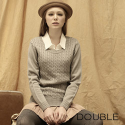 【DOUBLE】MIT學院感圓領麻花針織衫(灰M-L) |