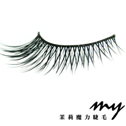 | 茉莉 魔力假睫毛【663】十對入 -------------------------------------------------------------------------------- 規格: 假睫毛十對 (不含假睫毛專用膠水,須另自行購買) 材質: 人工纖維 《使用方法》 1.將膠水塗抹在假睫毛的根部(要注意根部兩面都要塗上膠水) 2.單手輕輕拉上眼瞼,將假睫毛輕輕黏在真睫毛的根部 3.在膠水未乾前做細微調整 4.要營造濃密效果,讓假睫毛像真睫毛,可用濃密睫毛膏刷上使真假睫毛密合,呈現自然效果 5.卸除假睫毛時,用化妝棉沾取眼部專用卸妝液,敷在眼部5~10分鐘,即可卸除。