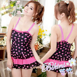 【Bikini芭比】愛戀小櫻桃 連身式泳衣(粉樣櫻桃) 《 本款式為 單件式連身泳裝裙商品 》
