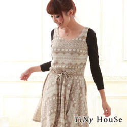 【TiNyHouse】束腰綁帶針織雪花背心傘擺洋裝 背心傘擺款式搭配雪花及小花的針織緹花紋路 突顯當季的最佳穿搭搭配功能