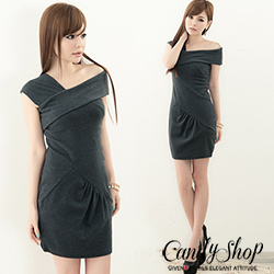 【candy小舖】城市女郎斜一片拼塊素面棉洋裝(深灰)