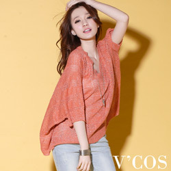 【V’cos】解放叛逆‧V領金蔥蝙蝠袖上衣(異國橘) V’COS SPRING美麗就是競爭力 |
