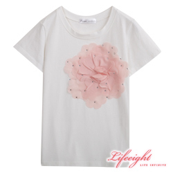 【Lifeeight】水鑽雪紡花朵棉質短袖T桖-柔白色