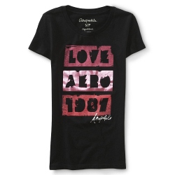 【AERO】女裝 現貨 亮彩LOVE塗鴉短T恤(黑) AERO的尺寸跟台版的尺寸是相同的~台灣尺寸穿S號~選擇S尺寸就可以囉!!!! |