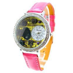 【Mirabelle】復古點唱機*陶土造景皮革錶-桃 陶土造景創意款式,讓錶面更加生動繽紛,搭配皮革錶帶,更顯質感,