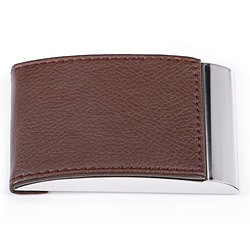 | 《VOYAGER》都會皮革名片盒(咖啡) 雅緻的流線外型,搭配荔枝紋手感皮革和鏡面拋光不鏽鋼,展現俐落的專業形象。直式開闔,內襯有絨布,盒蓋有磁性,方便您商務會客時使用,是款不可或缺的商務配件。