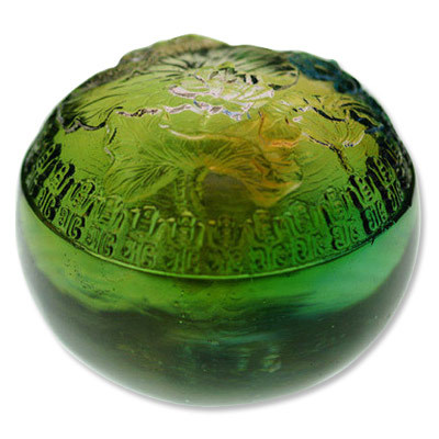 古法琉璃的識別特徵 A、色澤︰水晶和玻璃都有不同的色彩,但全部以純色為主,混合后會爆裂或者混濁。 唯有古法琉璃可以有多種顏色混成,且通透如故。 B、密度︰古法琉璃的密度明顯高于玻璃,略高于水晶,且手感滑潤。 C、聲音︰輕輕敲擊古法琉璃會有金屬之音。 D、透明度︰界于玻璃和水晶之間,偶有燒製流動過程產生的少量氣泡。