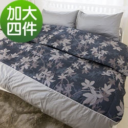 【米夢家居】100%精梳純棉-素色床包+兩用被套四件組(深秋黑葉)-雙人加大6尺