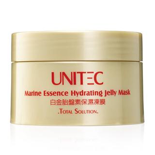UNITEC 白金胎盤素保濕凍膜 Marine Essence Hydrating Jelly Mask 主成分:海洋胎盤素、燕窩素、白芒花籽油、維他命原B5、荔枝/綠藻/葛根/蘆薈萃取特色: .海洋胎盤素強力吸水完全鎖水,解決肌膚乾荒。.白芒花籽油深層補水,並在肌膚外層鎖住水分,淡化乾燥性細紋。.燕窩素具吸水鎖水雙重保濕效果;且有效抗皺,延緩老化。.維他命原B5及綠藻萃取修護肌膚,使肌膚水嫩充滿彈性。.荔枝/葛根/蘆薈等植萃精華,具保濕及舒緩功效,提升肌膚光澤度。 使用方法:.睡前清潔肌膚後,取適量水凍膜塗抹於臉部及頸部,不需沖洗直接入睡,進行睡眠中8小時長效保濕。.任何時候皆可使用,清潔肌膚後,厚敷一層保濕水凍膜於臉部,停留約30分鐘後溫水沖洗乾淨即可。建議每星期使用2次維持肌膚水嫩狀態。 冰餅容量:80gm北市衛妝廣字第10112386號