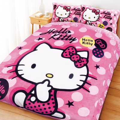 不專業評比@【享夢城堡】HELLO KITTY 搖滾點子法蘭絨毯寢系列(雙人四件式床包被套組)價格比較ptt
