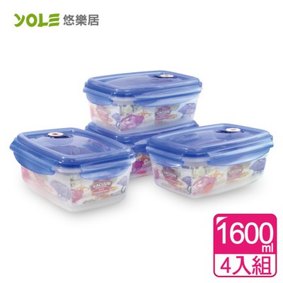 【YOLE悠樂居】海心氣壓真空四扣保鮮盒#1600ml(4入組)