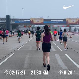 誰知道一過21公里,身體便出現一些反應,初時只是左小腿有些感覺,也不以為然,一看錶,原來速度下降到6分半一K...