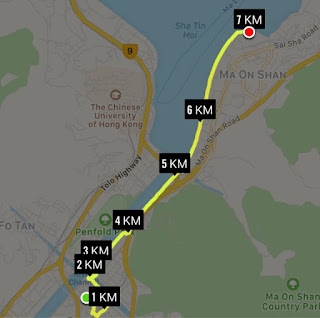 不知不覺間已經升到28度氣溫,孖橋來回後陳生依然故我,像在嚴冬中路跑,沒沾上半滴...