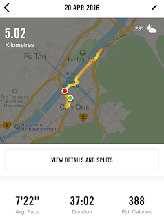 4月20日(三) 晚上(後按:由於NIKE APP來了一次大更新,本來可以準確地知道的起跑時間消失得無影無...