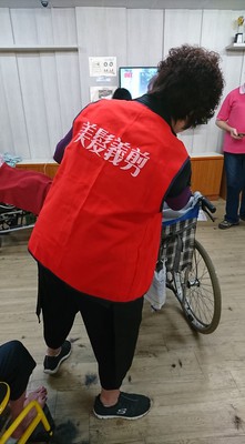 召集者老闆看到要理髮的婆婆,有一肢黑掉且發出異味的腳(已包紮),當下聲音有點哽咽,但她還是打起精神,跟失智但精神還很好的婆婆聊天,並幫她剪了一個好看的造型。