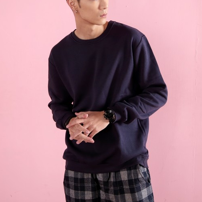 【預訂特價優惠】刷毛素面彈性大學T (深藍) 900 超實用僅此一檔