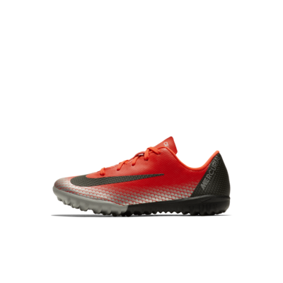 Nike Jr. MercurialX Vapor XII Academy CR7 小童草地足球鞋採用織物和合成材質,能夠包覆腳部,帶來舒適支撐與草地球場上的絕佳觸球感。