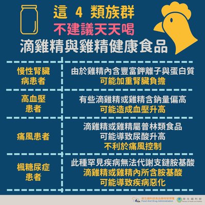 食藥署指出,想要真正補充體力,仍然必須攝取足夠蛋白質。不建議慢性腎臟病高血壓痛風及楓糖尿症患者天天喝鴻福堂...