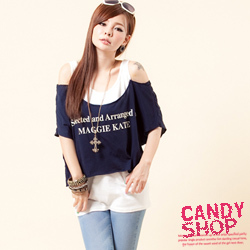 【candy小舖】街頭休閒假兩件英文露肩配色上衣(共二色) 產品網址 http://tw.partner.buy.yahoo.com/gd/buy?gdid=3709052&m...